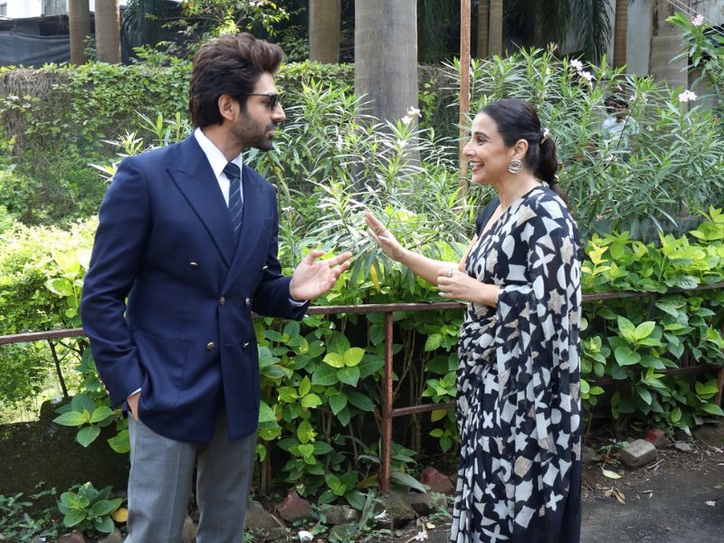 Vidya Balan And Kartik Aaryan Snapped Promoting Bhool Bhulaiyaa 3...